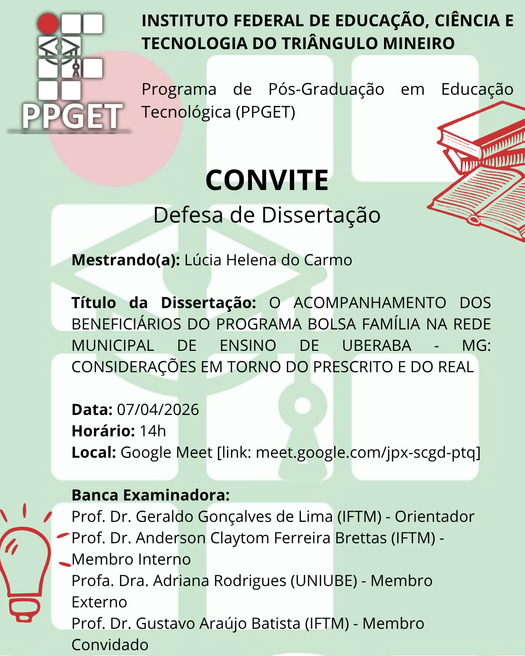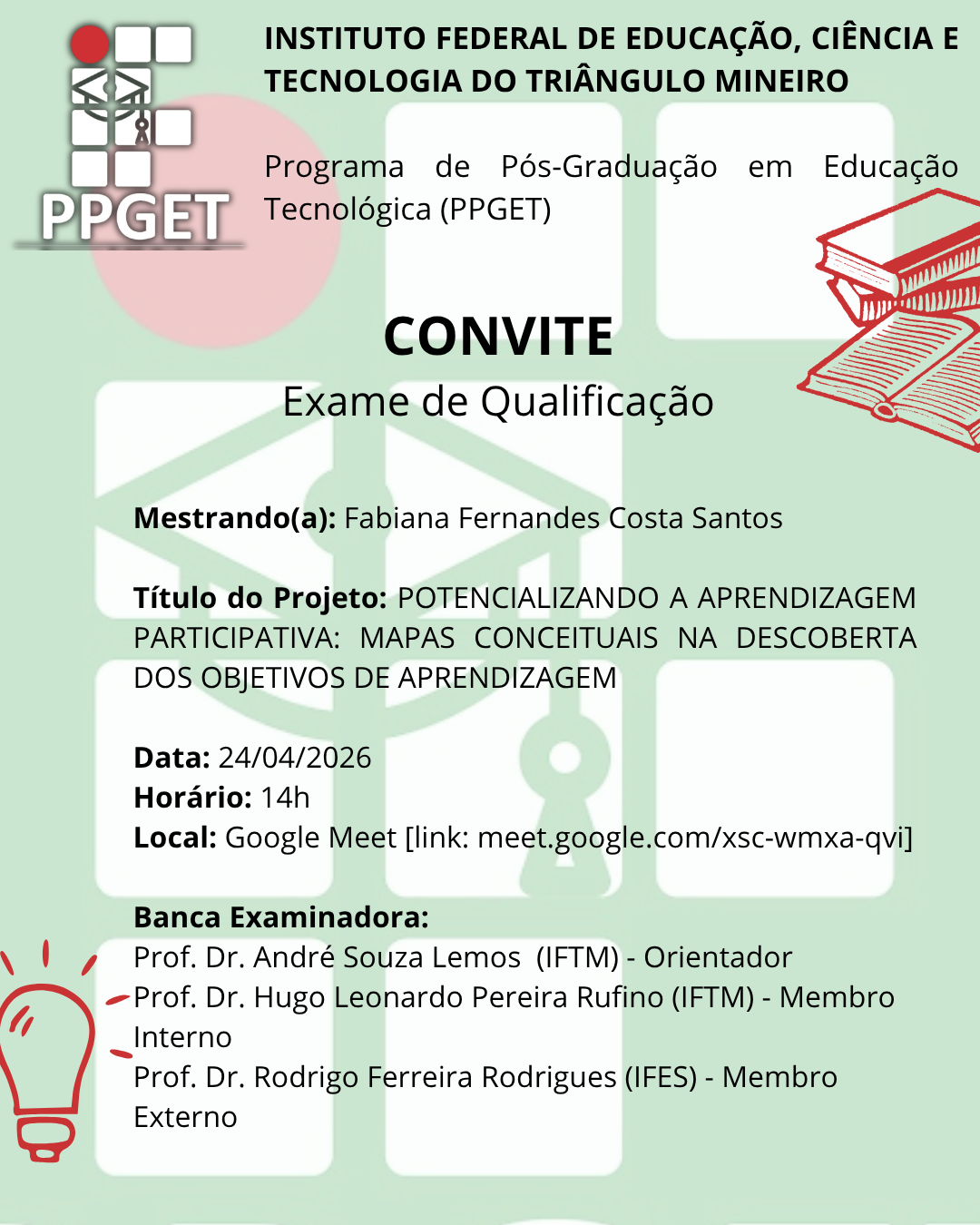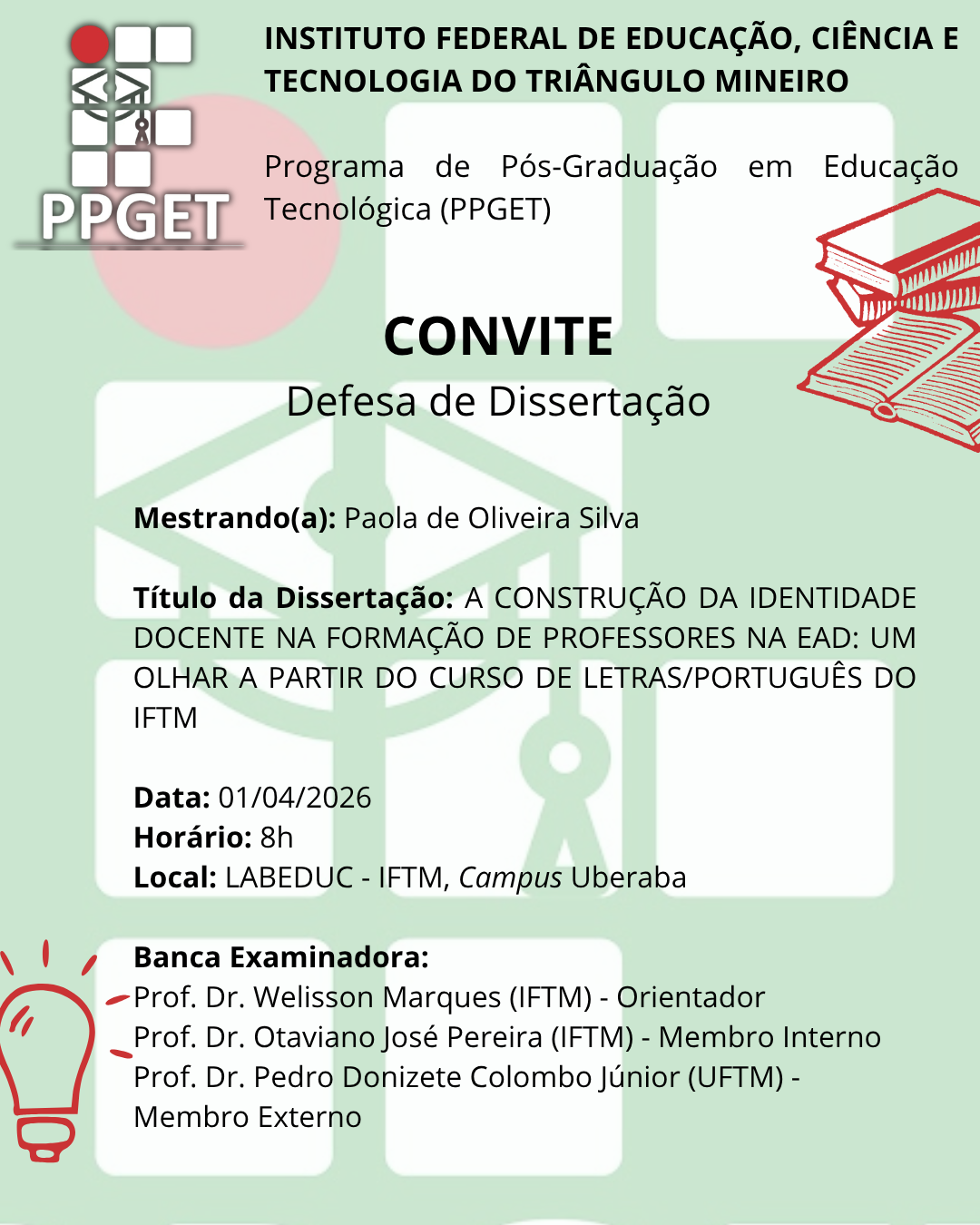 Ainda tem dúvidas? Entre em contato com: ppget@iftm.edu.br