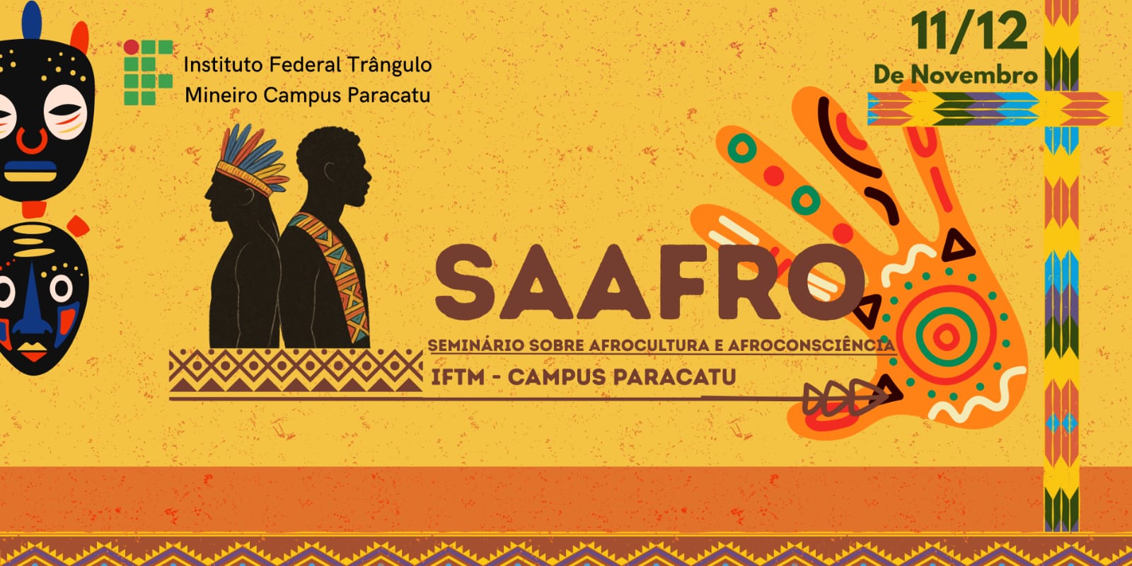 O II Seminário sobre Afrocultura e Afroconsciência do IFTM (SAAFRO), Campus Paracatu, cumprindo as disposições Leis 10.639/2003 e 11.645/2008, propõe discutir sobre a luta antirracista e a valorização da cultura afro-brasileira. Considerando que a cidade de Paracatu tem a maioria da população negra e um número significativo de comunidades tradicionais, cinco delas certificadas como quilombolas pela Fundação Palmares, o SAAFRO promove um encontro entre o conhecimento acadêmico e os saberes ancestrais, num espaço de reflexões e troca de experiências sobre diversidade, pluralidade e multiculturalidade, mas também sobre os avanços e lutas que ainda precisam ser travadas em prol da igualdade racial e de direitos. Além dos estudos dos pesquisadores, o SAAFRO também valoriza as iniciativas artísticas que ensinam e propagam sobre tolerância, respeito e ancestralidade. O evento contará com conferências, mesas, minicursos, oficinas e apresentações culturais.